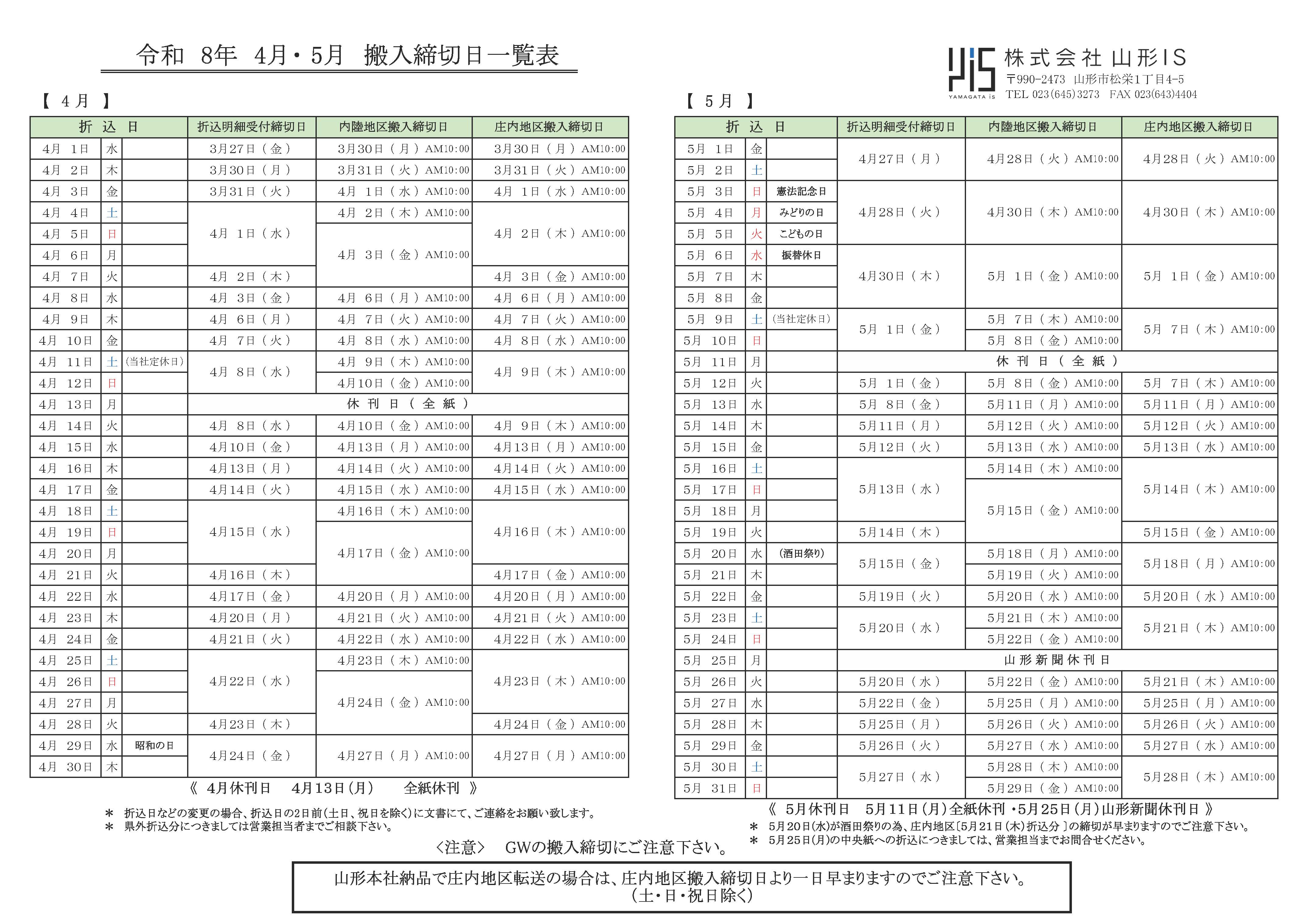 山形県新聞折込枚数表