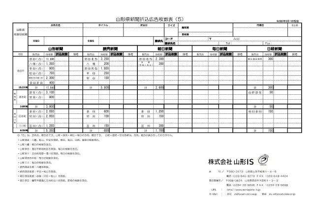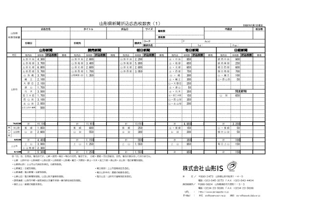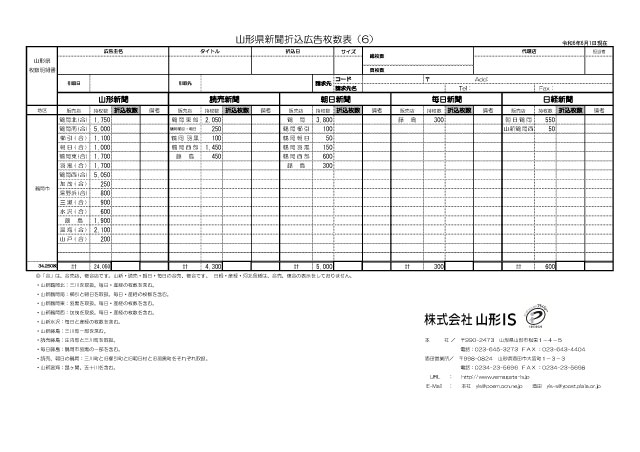 - 新聞折込み広告枚数表については、各販売店からの申告枚数により作成したものです。